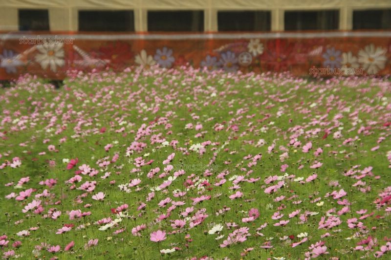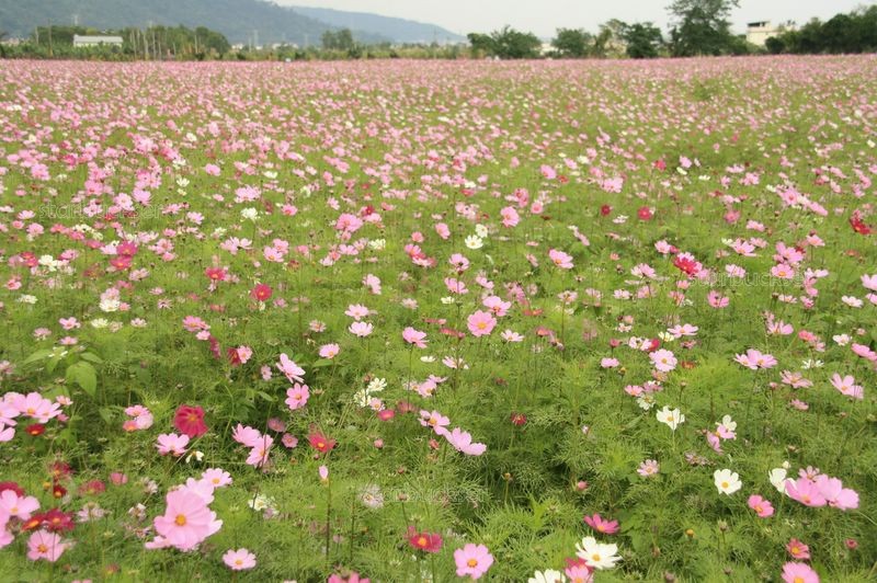 到東線拍台鐵列車與油菜花或大波斯菊花海融合在一塊兒的美景