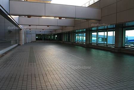 從廣場2F望向停機坪,兩道玻璃間的走廊可彈性運用