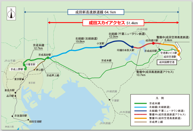 路線圖(取自京成電鐵官網:http://www.new-skyliner.jp/access.html)