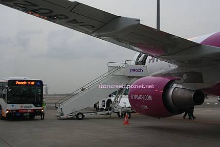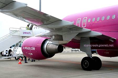 Peach本身有簡易的登機梯,沒有屋頂的晴天款式