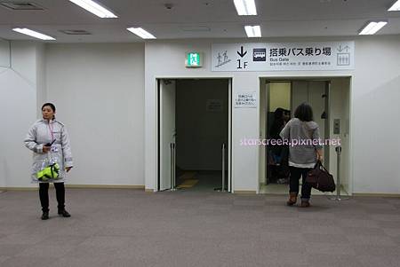 想搭巴士登機,自然得先下樓囉,走樓梯或搭電梯均可