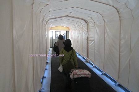 既然不在航站搭機,自然不會走空橋,而得搭巴士登機囉