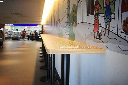 只能藉由從電扶梯通往巴士站的走廊設立食桌