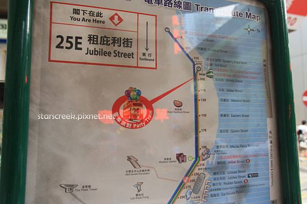 如果搭往西的叮叮電車前來(從銅鑼灣、山頂纜車來搭手扶梯)