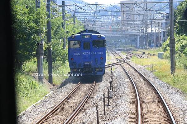 列車進站,是擁有海洋色彩的Kiha200系SSL塗裝車