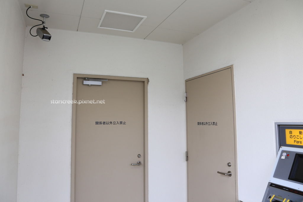 門邊的日文告示,提醒一般旅客用另一側的出入口離站