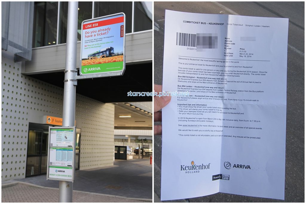 車資方面建議選購機往來回巴士+花園門票的組合,2016年為24歐元就搞定了。從阿姆斯特丹搭197線巴士到機場,再轉858線的套票為29歐元。套票可從花園官網訂購,自己列出A4紙憑它便可來回搭車+進出園區了!